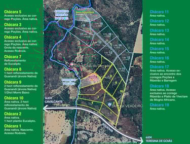 • 6 chácaras com acesso exclusivo ao córrego